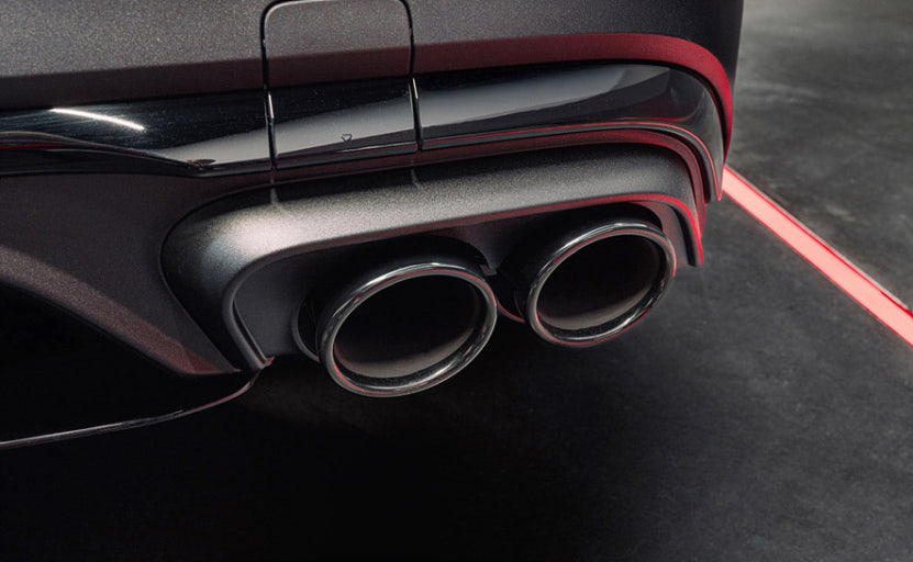 후면부는 리어 디퓨저와 쿼드 머플러가 중심을 잡습니다. 블랙 크롬 팁으로 마감된 배기구는 6기통 사운드를 시각적으로 암시하며, 고속 주행 시 다운포스를 돕는 립 스포일러가 더해져 스포티함을 강조합니다.