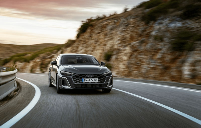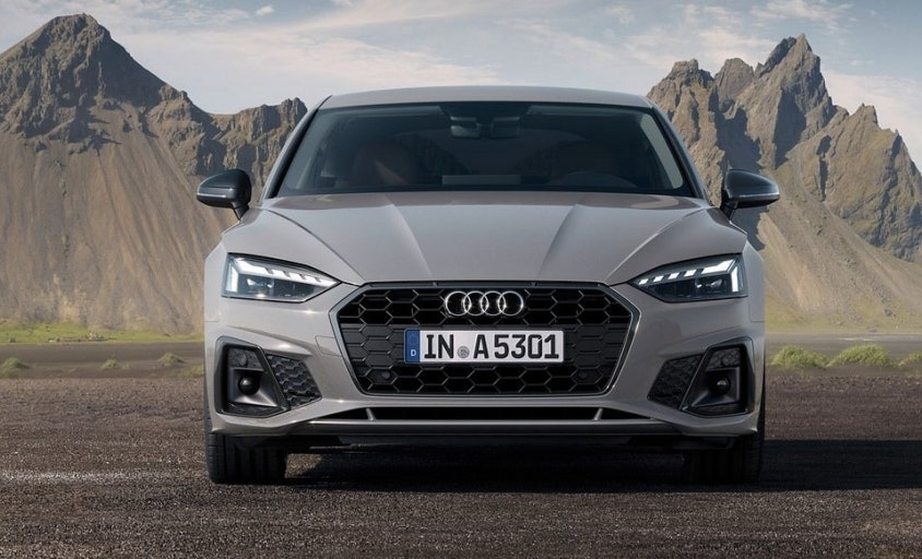 A5는 최근 풀체인지를 거치며 완전히 달라졌습니다. 전면부 싱글프레임 그릴은 더 넓고 낮아졌고, 헤드램프는 날렵해졌습니다. 이전 세대보다 훨씬 젊고 스포티한 인상입니다.