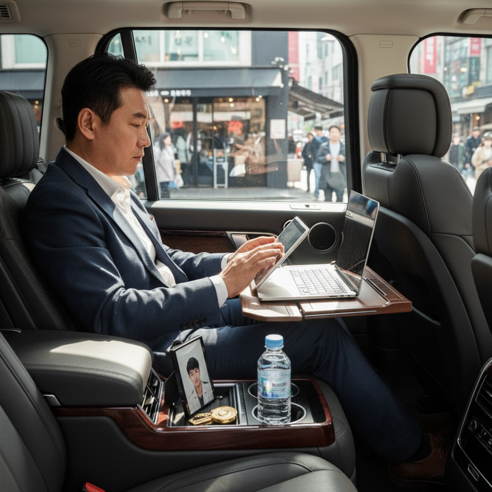 그는 직접 운전하기보다는 뒷좌석을 적극적으로 활용하는 구조를 통해 운전의 부담을 줄이고, 이동 시간을 업무 구상이나 휴식에 집중할 수 있는 환경으로 만들고 있습니다.